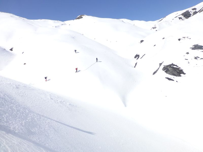 Possibilité de rejoindre la crête et la brèche de Chalance. Des sentiers subsistent aussi pour relier la Cime du Vallon ainsi que les refuges de l’Olan et du Pigeonnier à proximité. Si on est équipé de crampons et piolets, on peut basculer sur ce qui reste du glacier de la Muande et rejoindre soit le vallon de la Lavey, soit le sommet des Rouies par un parcours mixte sur les crêtes.