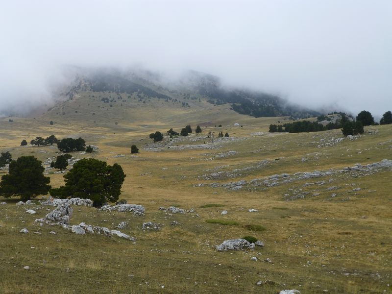 Pourtant on était sceptique au départ en voyant de gros nuages noirs nous arriver de l’Ouest. Ils avaient dit ciel voilé, pas bouché! Si bien que l’ambiance jusqu’au refuge est bien blanche même si la visibilité reste bonne.