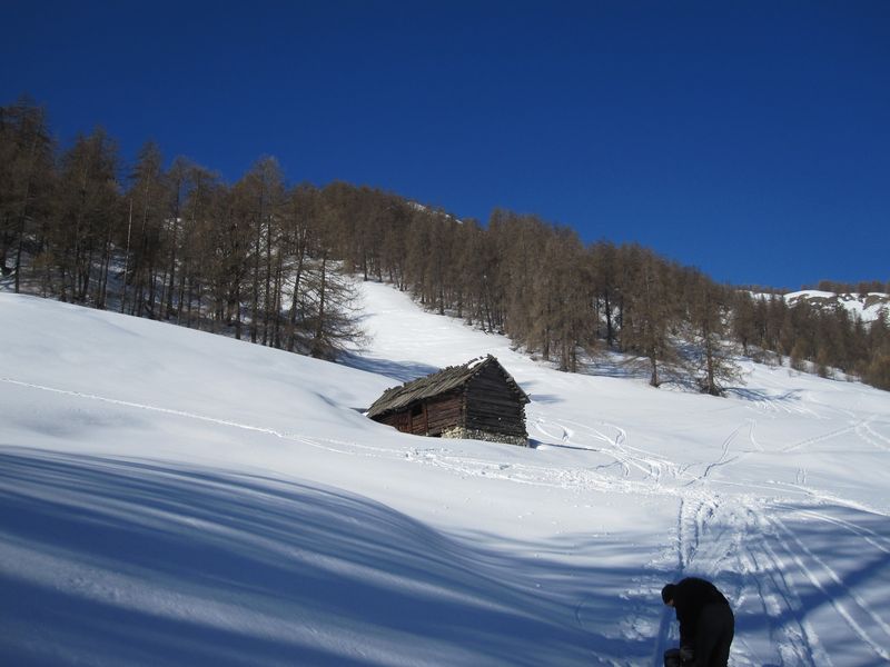 Ensuite je coupe directement dans les bois par la cabane de Peysse afin de limiter la descente au parcours le plus rapide car la neige ne porte plus dès 1560m.