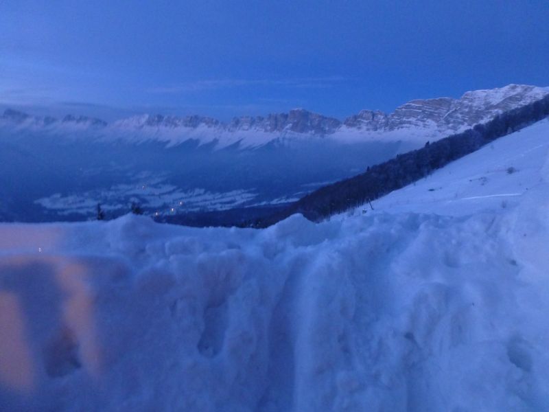 Car si nous avions dû entamer cette traversée après 2 semaines d’anticyclone, comme c’était le cas début janvier, nous n’aurions eu qu’une neige soufflée et cartonnée. Mais heureusement, 2 belles intempéries nous ont ramené de la fraîche si bien qu’au Crêt de la neige (1722m), point culminant du Haut-Jura, on a relevé en passant 1,40m de neige cumulée, soit beaucoup plus à altitude égale que dans Belledonne ou Chartreuse. Ainsi, 2h à peine après notre départ mettions nous les raquettes, et ce jusque Bellegarde où nous n’avons déchaussé qu’à 817m en versant Sud.