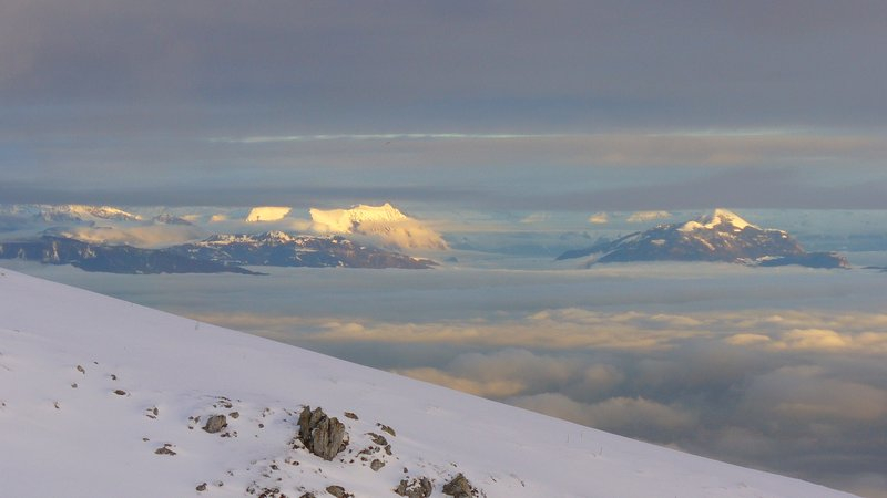 Bon c’est vrai, à ski aussi, cela aurait été possible mais à condition de rester sur les pistes toutes tracées ou alors avec des skis nordiques, mais alors l’accès aux crêtes n’aurait pas été toujours évident et le plaisir à la descente de toute façon limité.