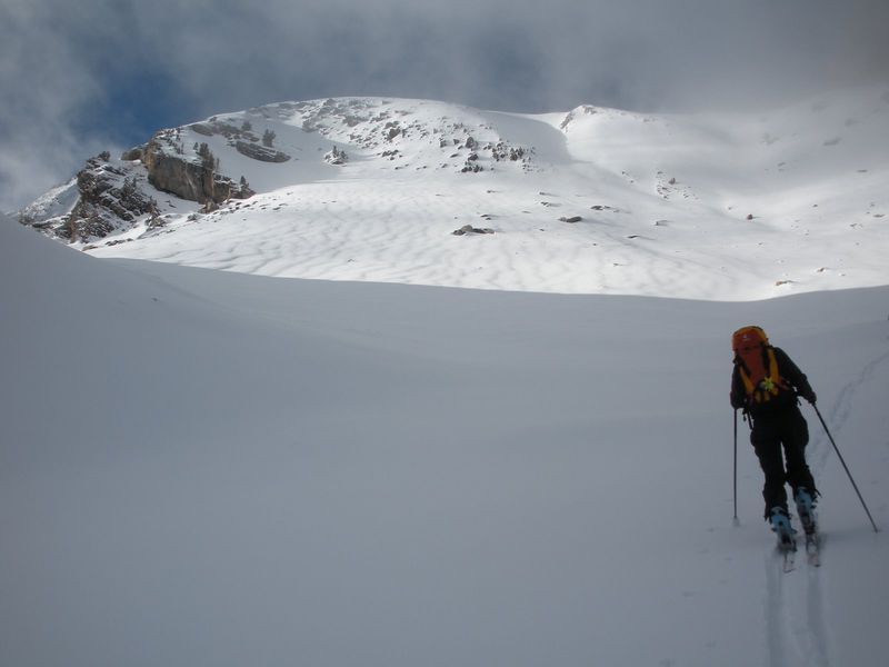– J2: col de Vautreuil (2582m) à partir du refuge. On s’arrêtera juste sous le col en raison de la neige et de la mauvaise visibilité. A noter qu’avec de bonnes conditions, il est possible de boucler et de redescendre par le vallon de Vautreuil emprunté la veille, mais c’est super long. Une jonction intéressante est aussi possible vers le secteur d’Allos, compter aussi une bonne journée à ski.