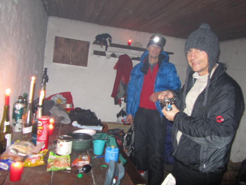 Ce n’est pourtant qu’une question d’organisation, car Guillaume le Sherpa est une fois encore parmi nous, alors qu’il n’a pas de voiture et vient exprès de Valence pour nous rejoindre comme à chaque fois et remettre ainsi sa couronne 2011 en jeu. Mais devant les horaires trop serrés des transports au retour, il redescendra finalement sans bivouaquer avec ceux qui ne restent pas coucher pour pouvoir prendre le train de 6h30 le lendemain à Grenoble. En tout cas, bravo car trop de Caban Touristes imaginent l’accès aux cabanes comme souvent pénibles, froid et fastidieux alors qu’avec un peu d’organisation, ça passe tout seul. En tout cas, de mémoire de K’ptain, y’a eu bien pire, ça c’est sûr..