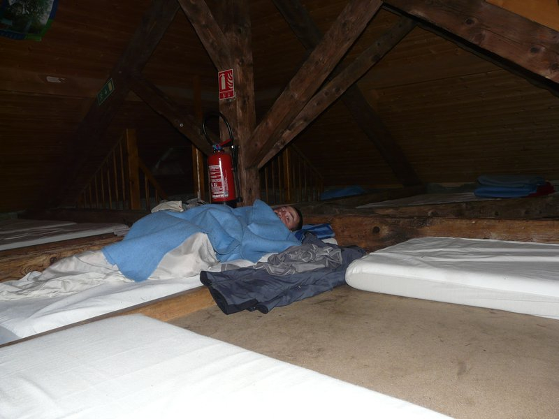 Il est 20h, il fait nuit et bien sûr elle est déjà occupée par 3 personnes, des locaux partis de St Agnès. Ils ont la gentillesse de nous faire un peu de place pour dîner et l’apéro commence sans plus tarder. Je refais du feu, mais c’est plus pour la forme que par nécessité car il fait vraiment bon en cette fin octobre. On laisse nos sacs à dos dehors pour avoir plus de place. Pour le couchage c’est une autre histoire, la cabane a beau avoir été refaite depuis notre passage au Habert des Sabottes (KGB 2007), les paillasses manquent un peu de largeur (20cm environ) pour accueillir 5 personnes, si bien que pour les laisser passer une nuit confortable, j’ai l’idée d’aller demander au gîte d’à côté – qui ce soir là est ouvert pour un anniversaire – s’il leur reste de la place. Coup de bol, c’est le cas, 2 places tout confort nous attendent, en plus l’aubergiste est très sympa, il ne nous demande aucun dédommagement. Nous apprécions d’autant que continuer ne nous servirait à rien, les Sabottes sont complets, et le Habert de la Sitre est un peu trop loin pour y aller à cette heure, surtout pour passer encore une soirée assez longue.