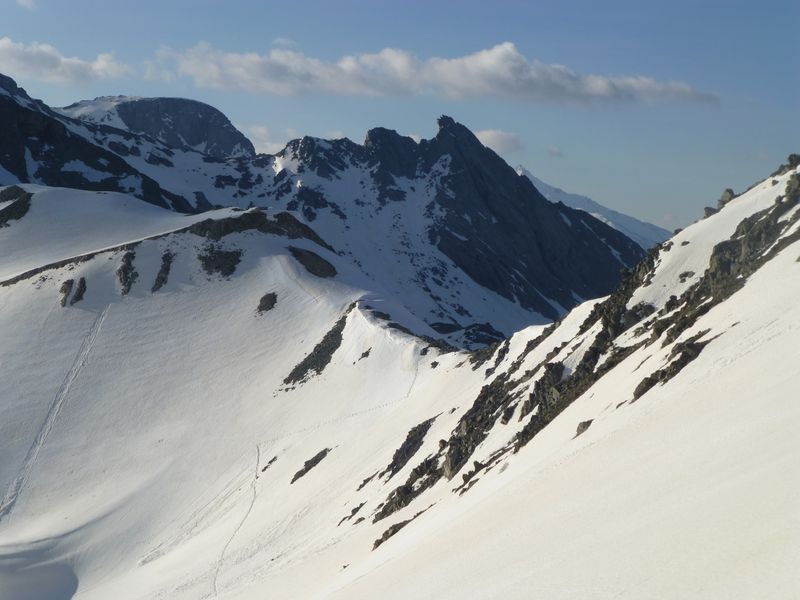 Marqué avec Aiguille occidentale Saussaz, Arves, glacier Lombard, Goléon, Grandes Rousses, Meije, Oisans, Rochers du Vallon, ski, Verdillon