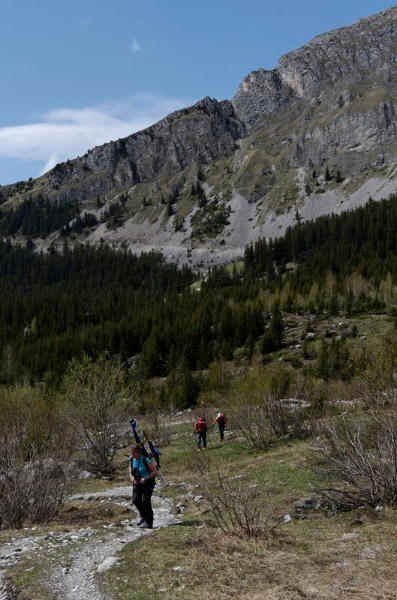 Superbe conditions au départ des Fontanettes: on réussit à hisser la voiture à 1733m pour partir dans la combe sud par le cirque d’Arcelin.