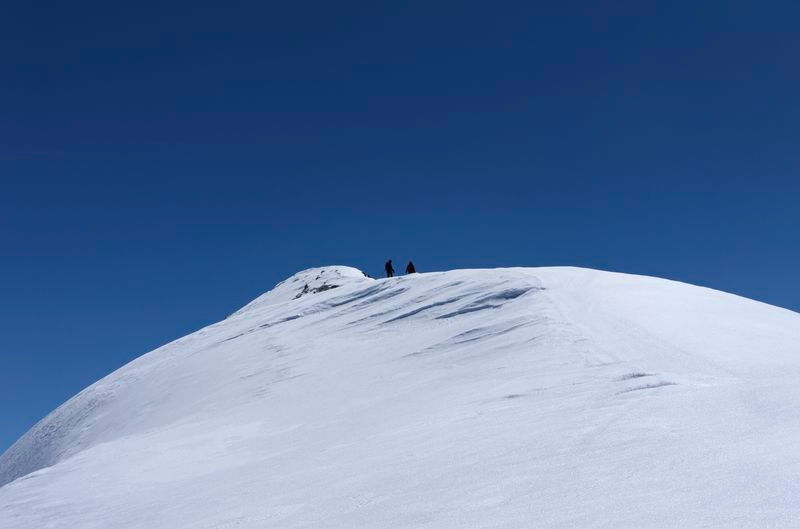 On commence à sentir l’altitude, mais après une bonne pause et avoir mangé un peu ça repart. Le soleil voilé fait qu’il ne fait pas trop chaud, le glacier est crouté, si bien qu’on glisse légèrement si on prend trop d’angle.