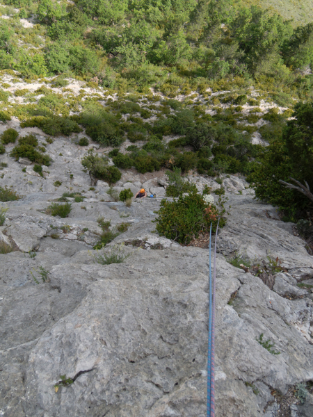 En revanche, quel spectacle! Impossible d’imaginer même en rebouclant le soir sur le village que là haut dans la falaise un sentier passe! A chaque contournement c’est un véritable spectacle, on a pas arrêté de prendre des photos tellement les points de vue sont époustouflants! La vire d’Archiane juste en face que nous devions enchaîner est saisissante. Elle requiert par contre un rappel pour franchir une faille (voir photos). Ne pas mésestimer le temps de parcours, car on progresse moins vite que sur un sentier normal. Aucun équipement nécessaire sur la vire du pas de Sambardou à part le casque si les bouquetins sont à proximité.